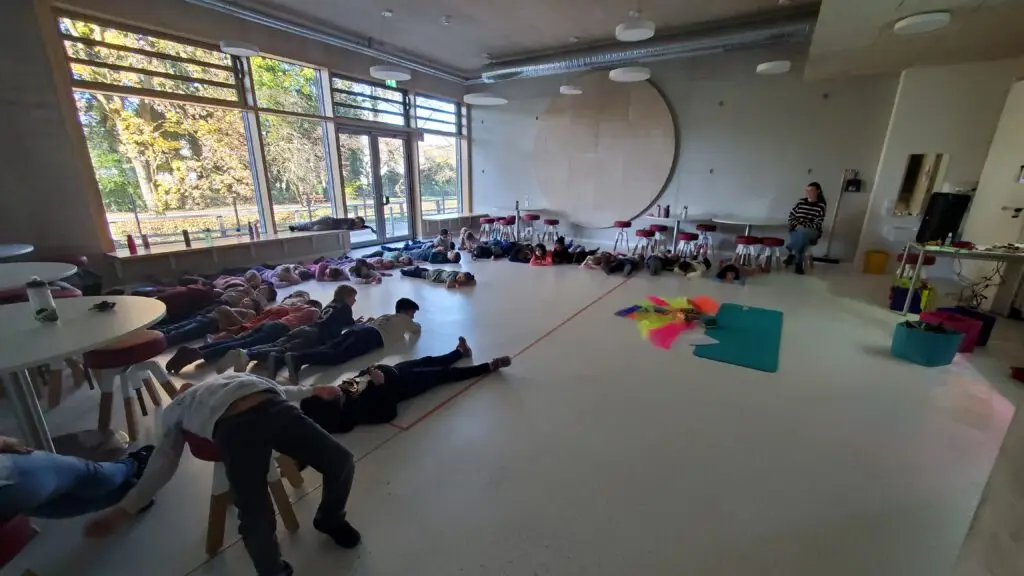 Eingebettet in eine Geschichte, durften wir Yoga- und Atemübungen machen sowie uns zu Musik bewegen. Mit Feuereifer und Begeisterung waren die Kinder dabei und die Zeit verflog im Nu.